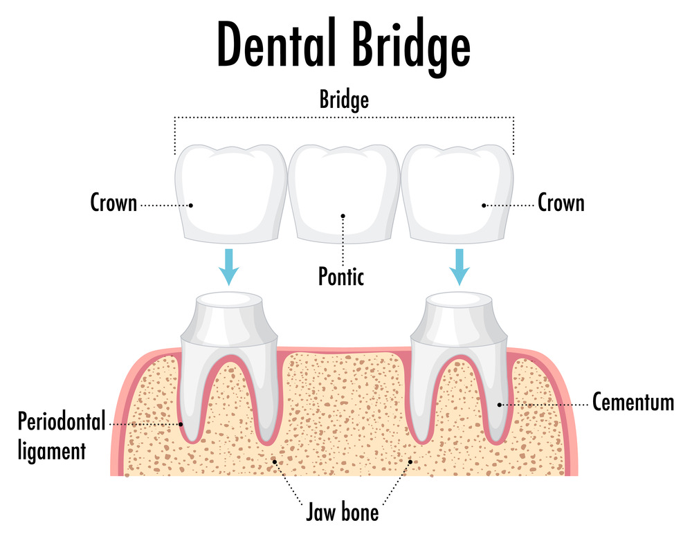 Dental bridge involves the replacement of one or more teeth that have been lost, by filling the gap between the healthy teeth. These teeth hold the bridge on either side of the gap or the implants in the teeth.